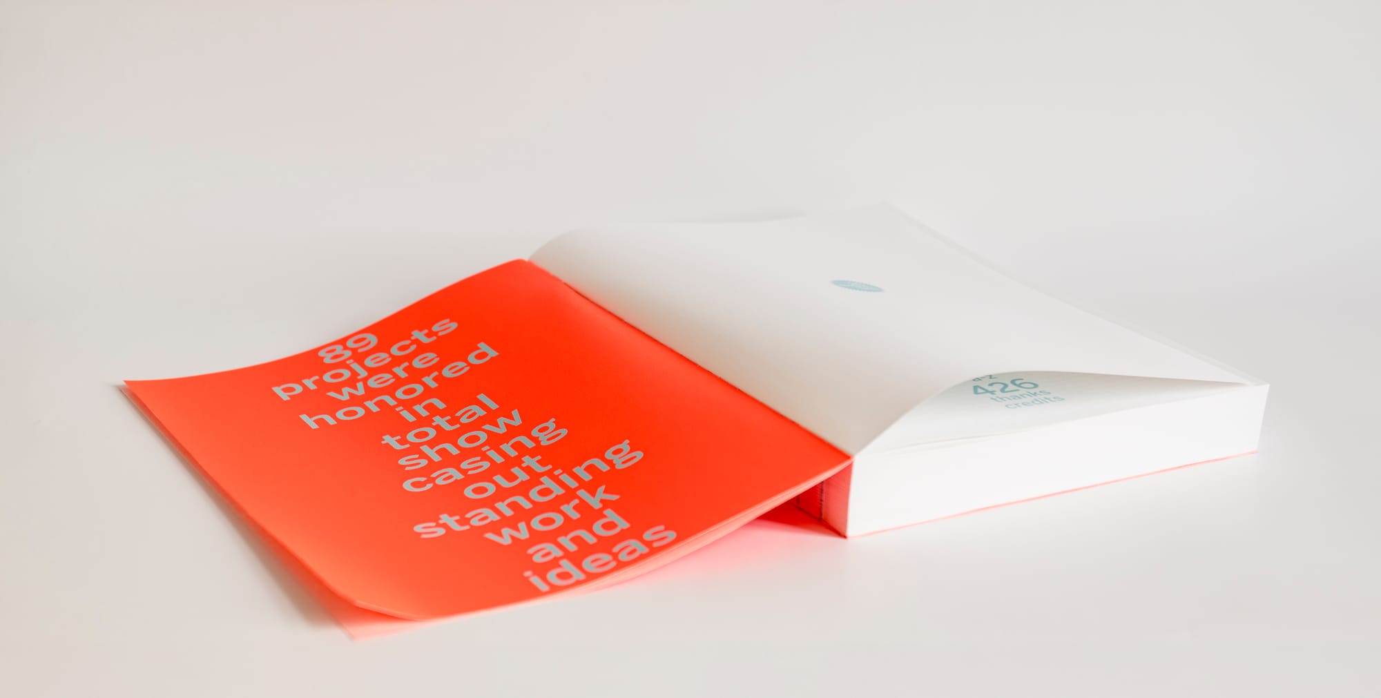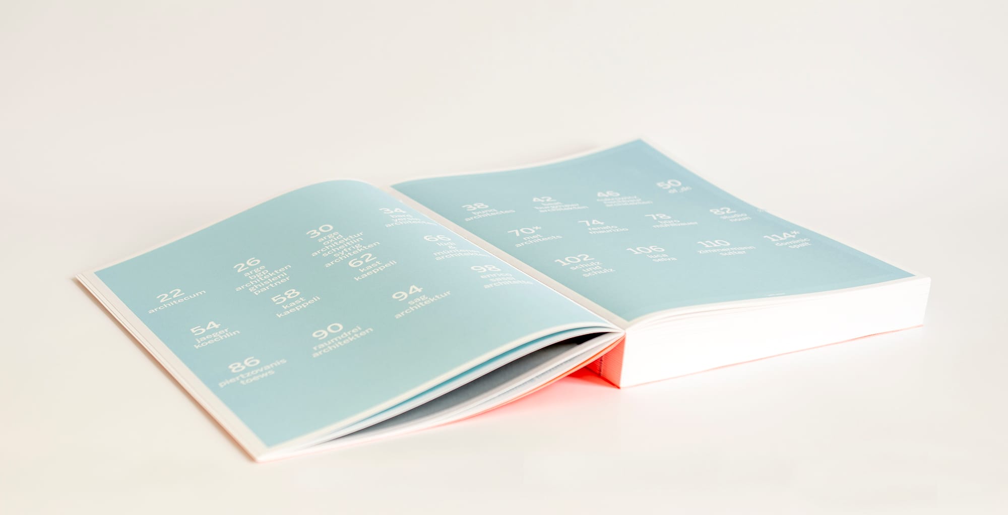 Ein hellblauer Siebdruck liegt auf der roten Leinenoberfläche und sorgt für einen feinen optischen Flimmereffekt. Gestaltung und Materialität greifen hier bewusst ineinander und unterstreichen den Anspruch, die ausgezeichneten Projekte in einer adäquaten, hochwertigen Form zu präsentieren.