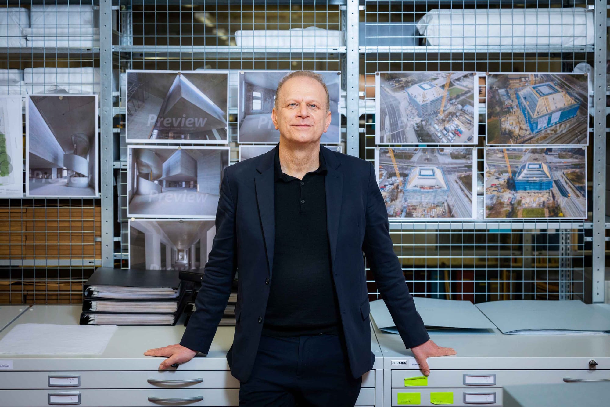Rudolf Fischer leitet das Archiv der Avantgarden – Egidio Marzon. Bereits die Architektur des Gebäudes ist ein Erlebnis. Bilder: © Archiv der Avantgarden, SKD, Foto: Klemens Renner. Porträtfoto: Oliver Killig