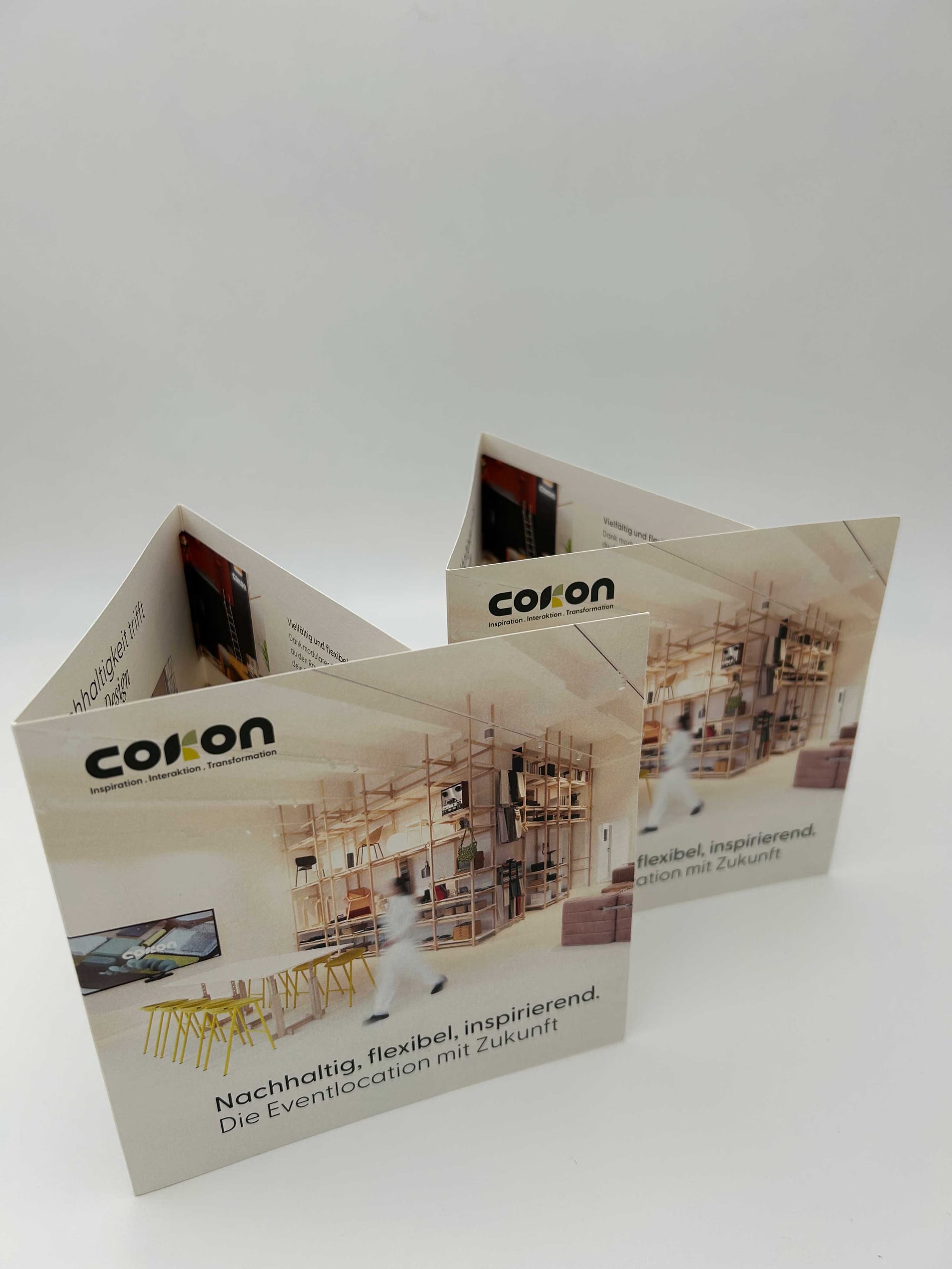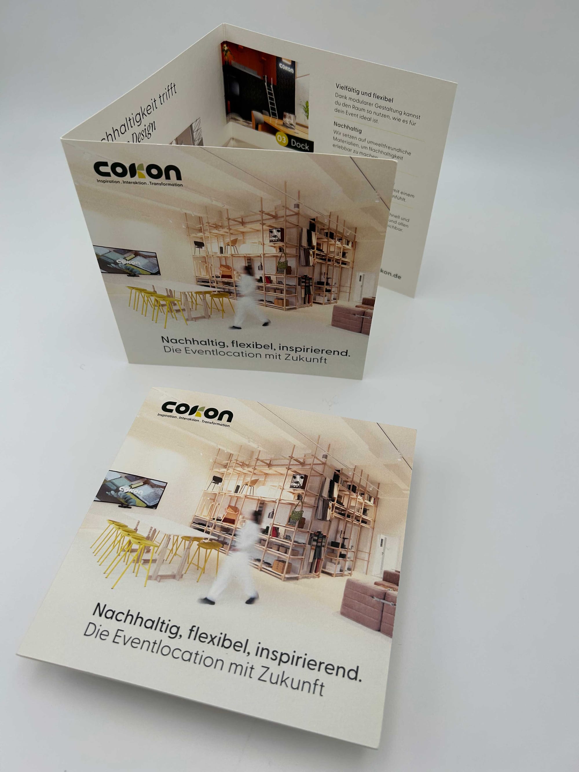 Mit großformatigen Fotos sowie knackigen Botschaften in klarer Typografie gelang es so, die Philosophie von cokon und die besondere Atmosphäre vor Ort perfekt einzufangen. Wichtig war den Kreativen dabei auch die Papierwahl: »Nach intensiver Recherche entschieden wir uns für ICON Nature rough off white 270g – ein Naturpapier mit warmer Anmutung, angenehmer Haptik und Blauer Engel-Zertifizierung. Dieses Papier war ein absoluter Glücksfall: Es vereint ökologische Verantwortung mit einer besonderen Sinnlichkeit«, so Roman Tönjes. Gedruckt wurde bei Colour Connection in Frankfurt.