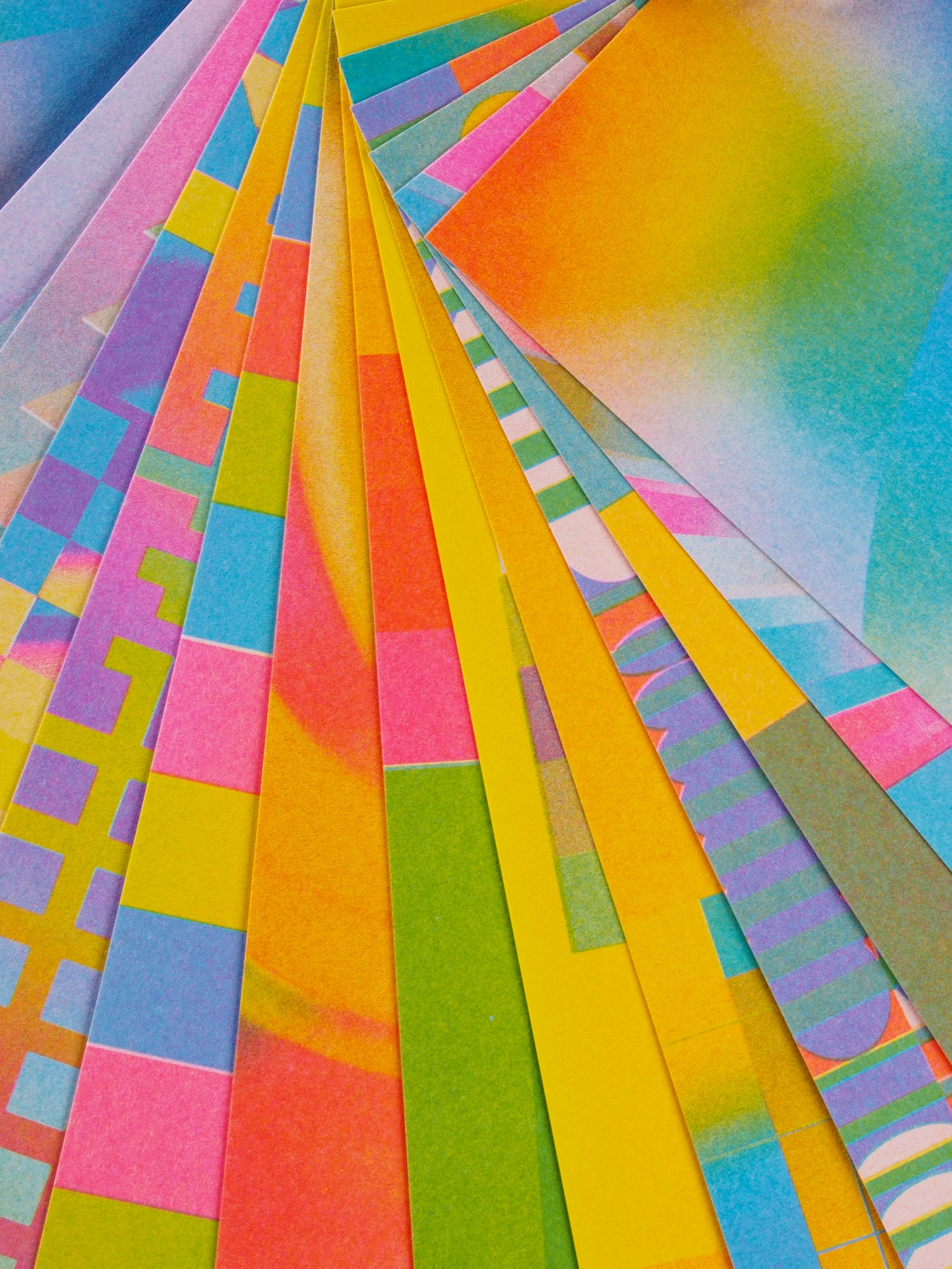Die leuchtenden Farbschichten verbinden sich mit der warmen Papiernuance zu einer harmonischen Gesamtwirkung – kraftvoll und zugleich weich im Ausdruck. Jeder Monat wird so zu einer eigenständigen Komposition aus Farbe, Fläche und Textur.